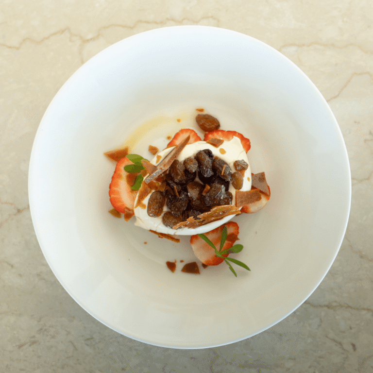 Vores menu er inspireret af stemningen i forestillingen: elegant, intens og lidt dekadent – med smag af dansk sommer og et glimt i øjet.
